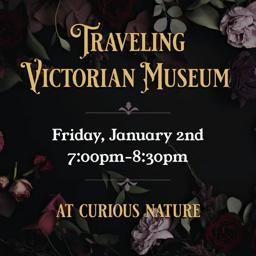 Spend an evening learning about Victorian mourning customs, séances, and their obsession with talking to the other side. Flitter Mouse Traveling Victorian Museum will present original artifacts to make you feel like you have taken a step back in time. From mourning jewelry to spirit photography, you will take a ride through the eery bits of the era obsessed with death and the afterlife.